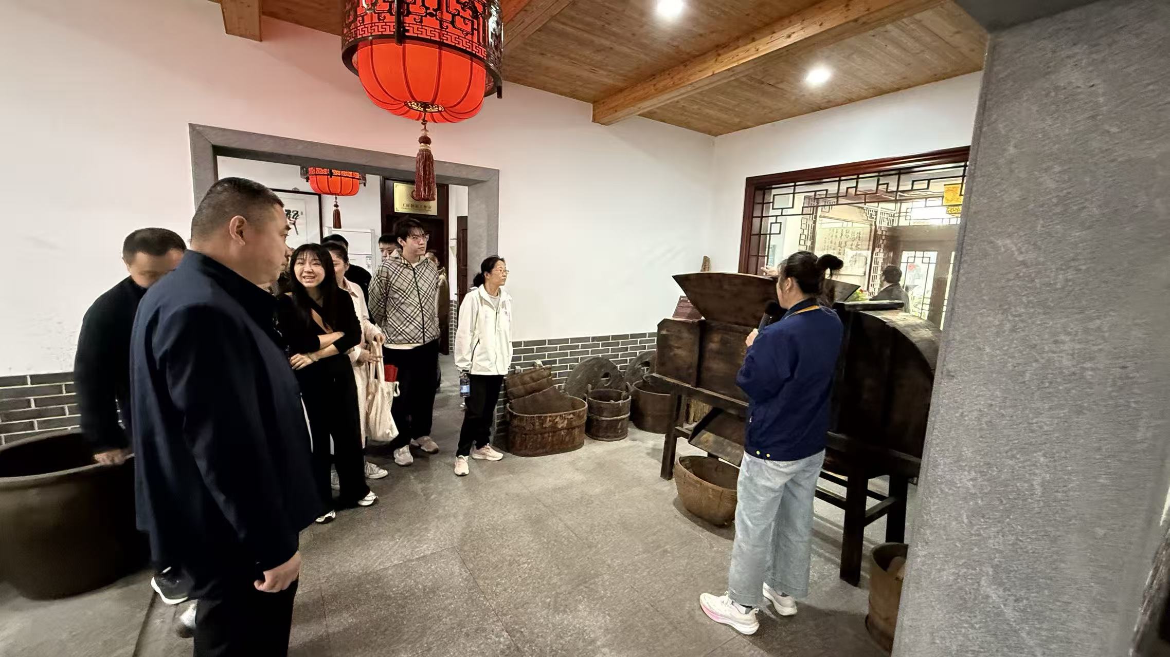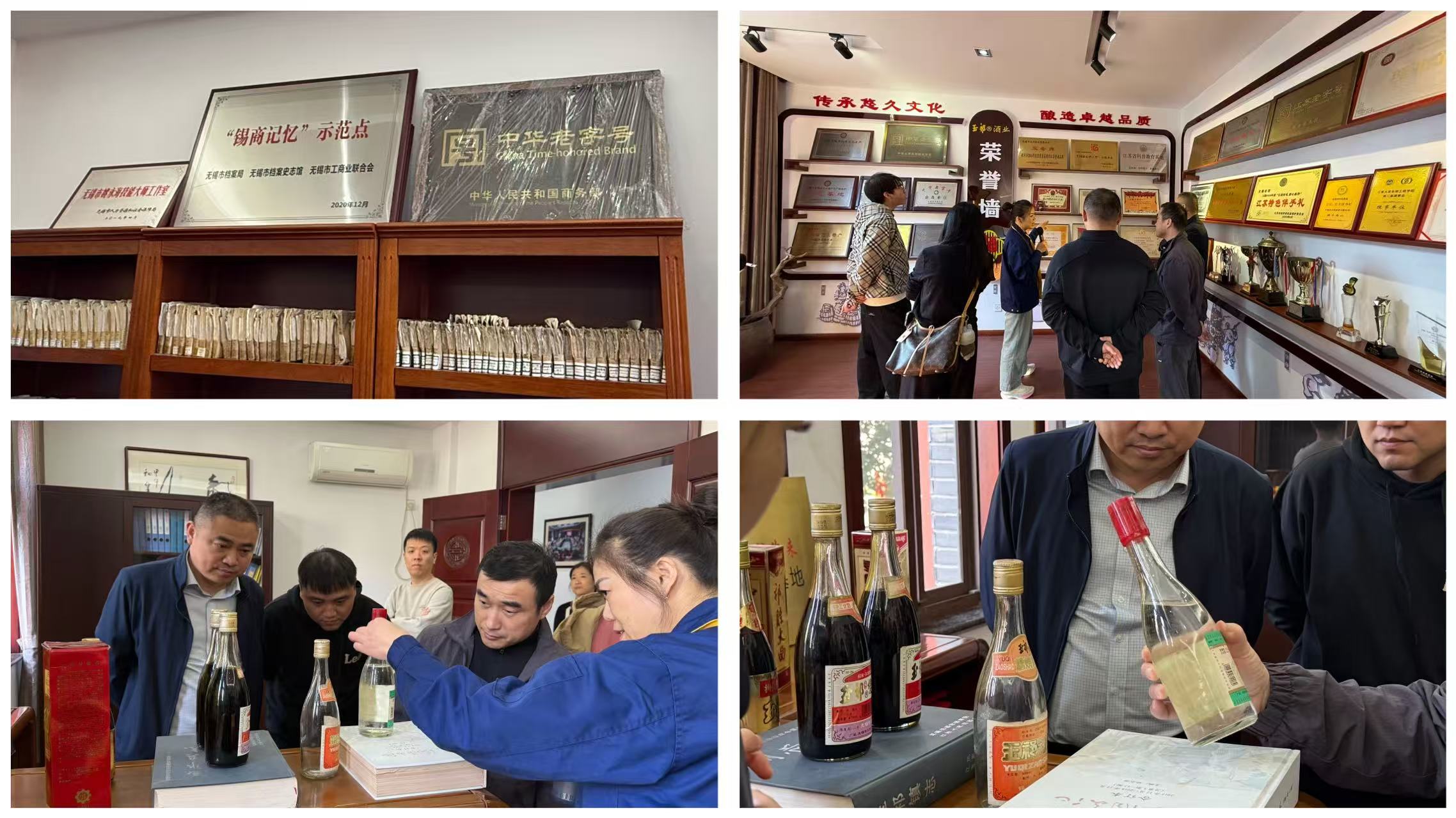 走進(jìn)玉祁酒業(yè),古色古香的釀酒作坊與現(xiàn)代化生產(chǎn)車(chē)間交相輝映,空氣中彌漫著醇厚的酒香。在企業(yè)工作人員的帶領(lǐng)下,黨員們先后參觀(guān)了雙套酒釀造技藝展示館、企業(yè)展覽館、釀造車(chē)間、江南醬香酒體品鑒中心等場(chǎng)所。從明清時(shí)期的釀酒器具、古早的酒標(biāo)標(biāo)識(shí),到如今的非遺釀造技藝展示,一幅幅珍貴的歷史圖景、一個(gè)個(gè)生動(dòng)的生產(chǎn)場(chǎng)景,全方位展現(xiàn)了玉祁酒業(yè)百年的傳承與發(fā)展。